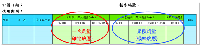 | 確定效應 | 人員劑量計 | 0.1~10,000 mSv | 佩戴監測 | 本期劑量 |